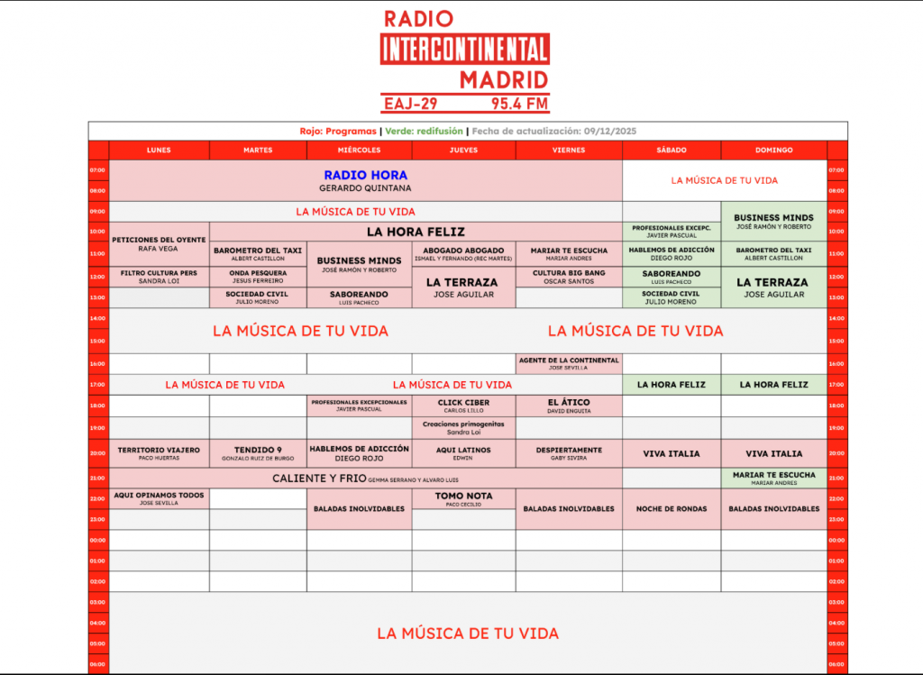 Información clave Se emite en Radio Intercontinental (Madrid) en la frecuencia 95.4 FM. En su programación aparece en el horario…